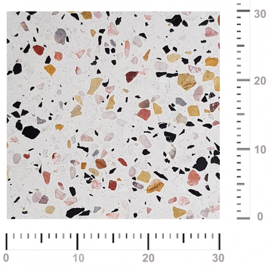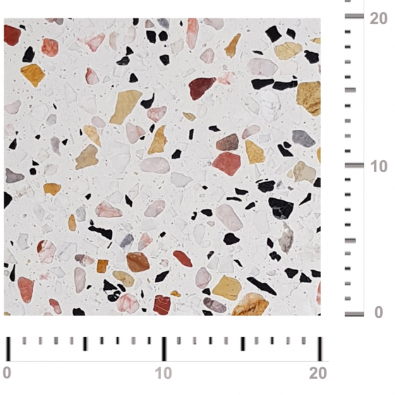 Gạch Terrazzo hạt đá của Secoin được làm từ chất liệu đá thiên nhiên với nhiều màu sắc, xi măng trắng, bột màu, bột đá và các phụ gia khác. Được sản xuất trên dây chuyền thiết bị hiện đại của Italy, đem lại những đặc tính nổi trội về độ chịu lực và độ chịu mài mòn cao, dễ lau chùi, sạch sẽ. Với đặc tính đó gạch đá mài không chỉ được ưa chuộng để lát sân vườn, mà còn được dùng để lát nền nhà ở, lát bếp nấu ăn, lát bậc thang, … Và tại Secoin với chất liệu Terrazzo, các nhà thiết kế có thể tự chọn phối màu nền và phối màu hạt đá theo cách riêng của mình.