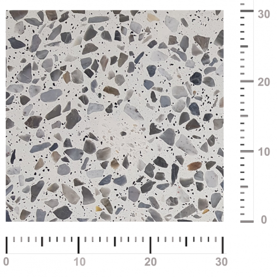 Gạch Terrazzo hạt đá của Secoin được làm từ chất liệu đá thiên nhiên với nhiều màu sắc, xi măng trắng, bột màu, bột đá và các phụ gia khác. Được sản xuất trên dây chuyền thiết bị hiện đại của Italy, đem lại những đặc tính nổi trội về độ chịu lực và độ chịu mài mòn cao, dễ lau chùi, sạch sẽ. Với đặc tính đó gạch đá mài không chỉ được ưa chuộng để lát sân vườn, mà còn được dùng để lát nền nhà ở, lát bếp nấu ăn, lát bậc thang, … Và tại Secoin với chất liệu terrazzo, các nhà thiết kế có thể tự chọn phối màu nền và phối màu hạt đá theo cách riêng của mình.