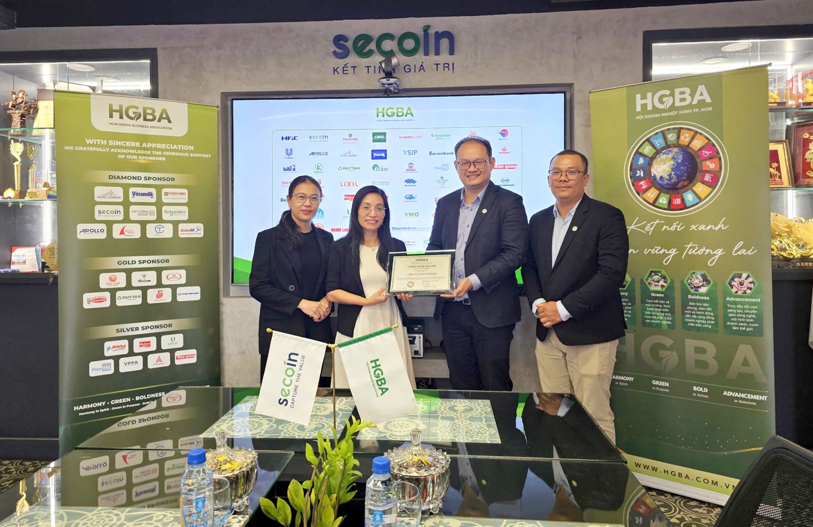Trong vai trò là hội viên tích cực của HGBA, Secoin tự hào tham gia và đóng góp vào hành trình phát triển bền vững của ngành vật liệu xây dựng. Qua từng sự kiện kết nối và dịp gặp gỡ, Secoin không chỉ chia sẻ kinh nghiệm và giải pháp vật liệu xanh mà còn tham gia hỗ trợ cơ sở hạ tầng cho Hiệp hội, nhằm lan tỏa các giá trị đổi mới sáng tạo và thúc đẩy tiến trình chuyển đổi số, hướng tới một hệ sinh thái doanh nghiệp xanh vững vàng và bền vững.