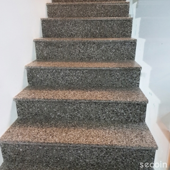 Bậc cầu thang Terrazzo Secoin được làm từ chất liệu tấm Terrazzo một lớp cao cấp và ép trên dây chuyền thiết bị hiện đại giúp cho sản phẩm có khả năng chịu lực và chịu va đập. Bên cạnh nhiều mẫu thiết kế đẹp mắt phối hợp hài hòa giữa màu nền và màu hạt đá trang trí, bậc cầu thang Terrazzo Secoin có thể được làm theo thiết kế của khách hàng.