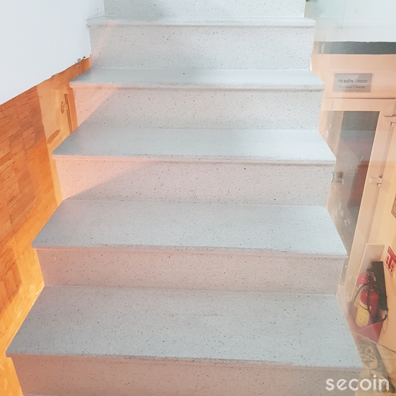 Bậc cầu thang Terrazzo Secoin được làm từ chất liệu tấm Terrazzo một lớp cao cấp và ép trên dây chuyền thiết bị hiện đại giúp cho sản phẩm có khả năng chịu lực và chịu va đập. Bên cạnh nhiều mẫu thiết kế đẹp mắt phối hợp hài hòa giữa màu nền và màu hạt đá trang trí, bậc cầu thang Terrazzo Secoin có thể được làm theo thiết kế của khách hàng.