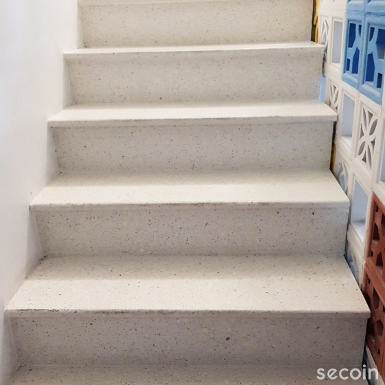 Bậc cầu thang Terrazzo Secoin được làm từ chất liệu tấm Terrazzo một lớp cao cấp và ép trên dây chuyền thiết bị hiện đại giúp cho sản phẩm có khả năng chịu lực và chịu va đập. Bên cạnh nhiều mẫu thiết kế đẹp mắt phối hợp hài hòa giữa màu nền và màu hạt đá trang trí, bậc cầu thang Terrazzo Secoin có thể được làm theo thiết kế của khách hàng.