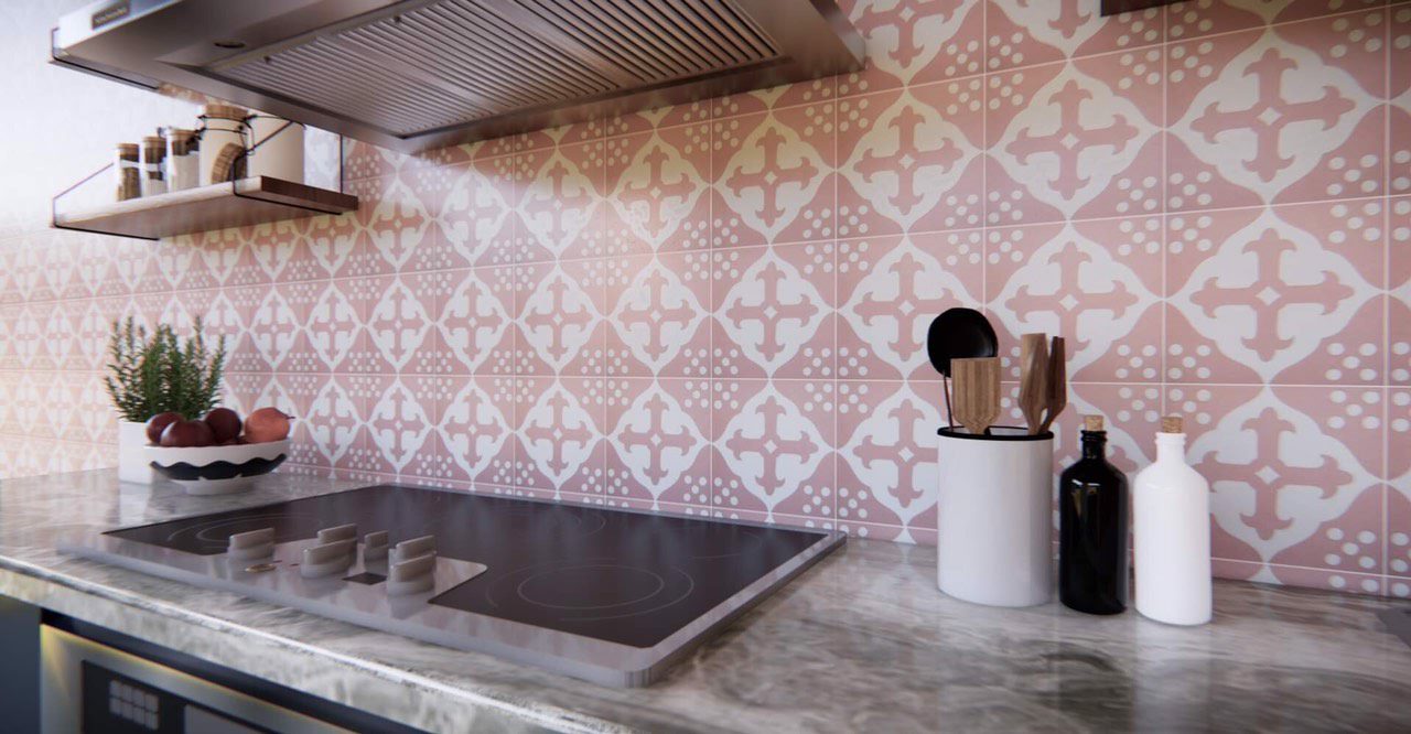 Sweet pink tone walltiles for kitchen with encaustic cement tile A697