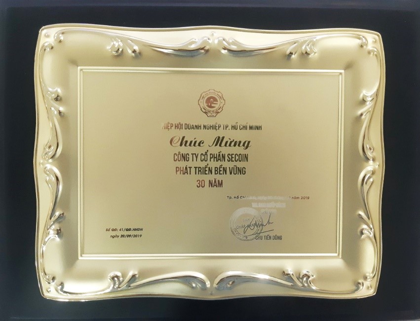 The award for "Outstanding products and services of Hochiminh City” organized by Hochiminh City Business Association (HUBA) every other year for the purpose of honoring and promoting product and service brands. At the ceremony, Secoin was awarded two titles of Enterprise with "Outstanding Product and Service in Hochiminh City" in 2019 and "Sustainable development over 30 years ”.