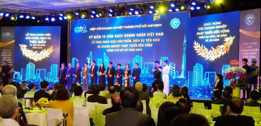On the evening of October 12, 2019, at Vinpearl Luxury Landmark 81, Hochiminh City Business Association (HUBA) celebrated the 15th anniversary of Vietnam Entrepreneurs Day (October 13, 2019) and honored and awarded the title to the enterprise that achieved "Outstanding products and services of Hochiminh City ”in 2019 and congratulated enterprises for sustainable development over 30 years.