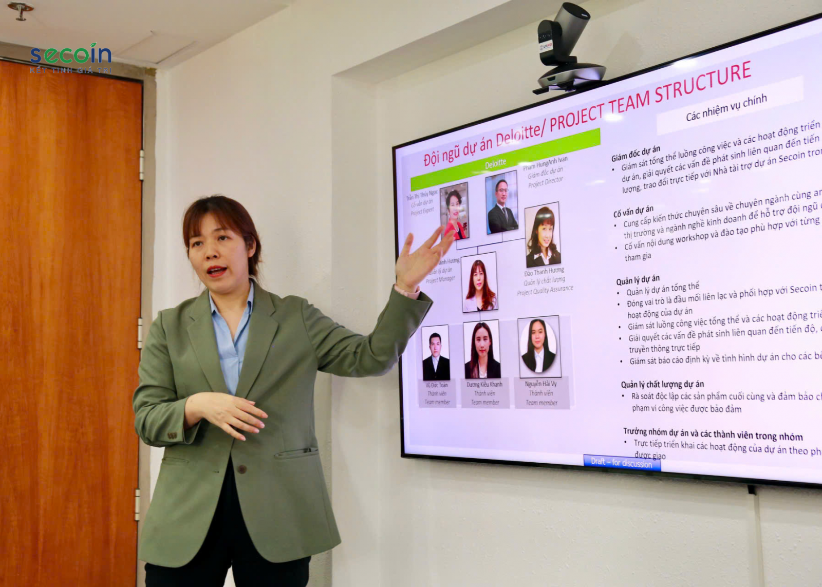 Ms. Pham Thi Minh Huong, Project Manager, on behalf of Deloitte Vietnam, introduced the Project content, scope of work, approach and implementation plan, introduced the coordination method between the parties in the project and the project management method. The parties also discussed openly to come up with the best action plan to ensure the content and progress of the Project.