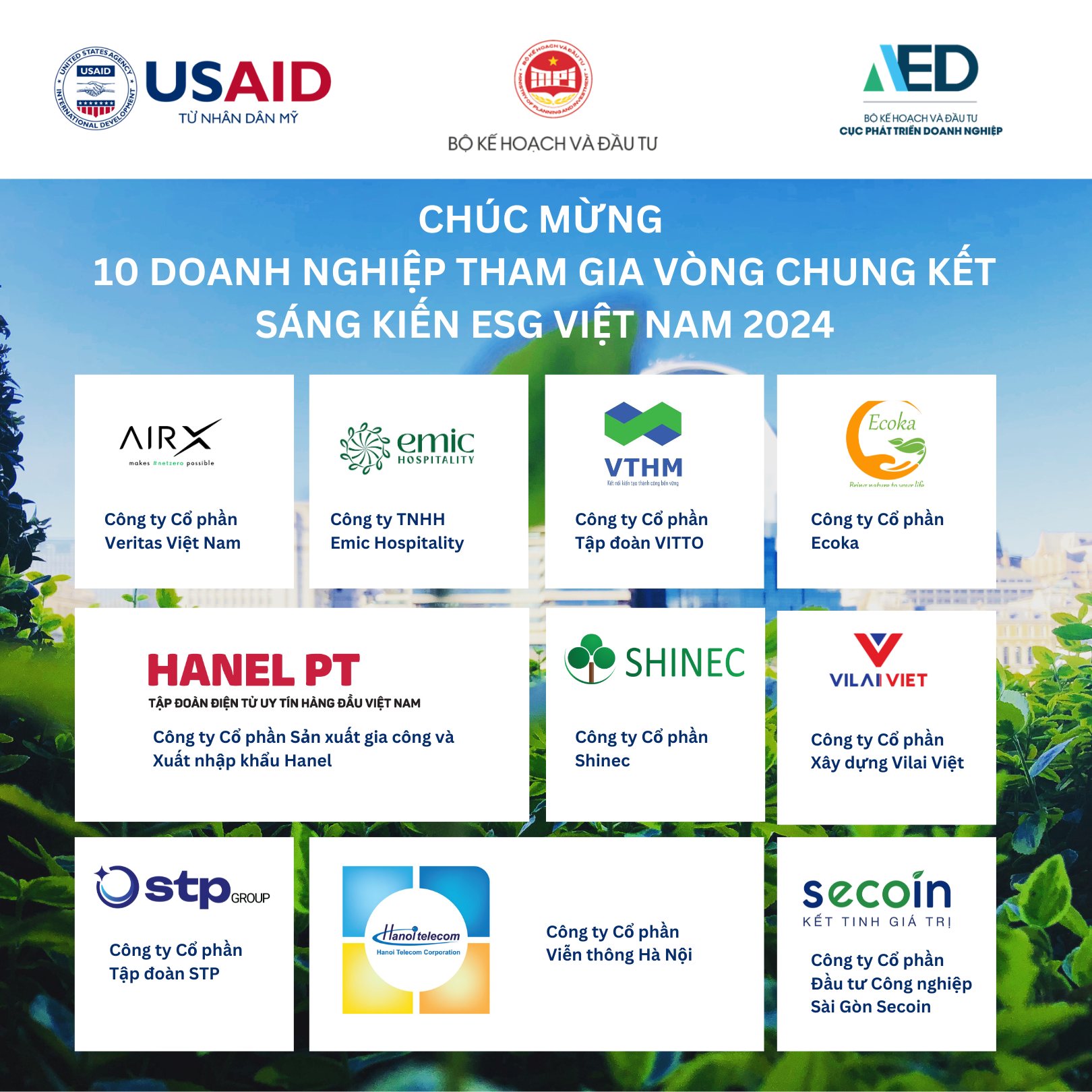 This program supports businesses in implementing ESG (Environment, Social, and Governance) assessment frameworks and sustainable business practices. It is led and implemented by the Department of Enterprise Development, Ministry of Planning and Investment, and the United States Agency for International Development (USAID) through the Vietnam Private Sector Competitiveness Enhancement Project (IPSC).