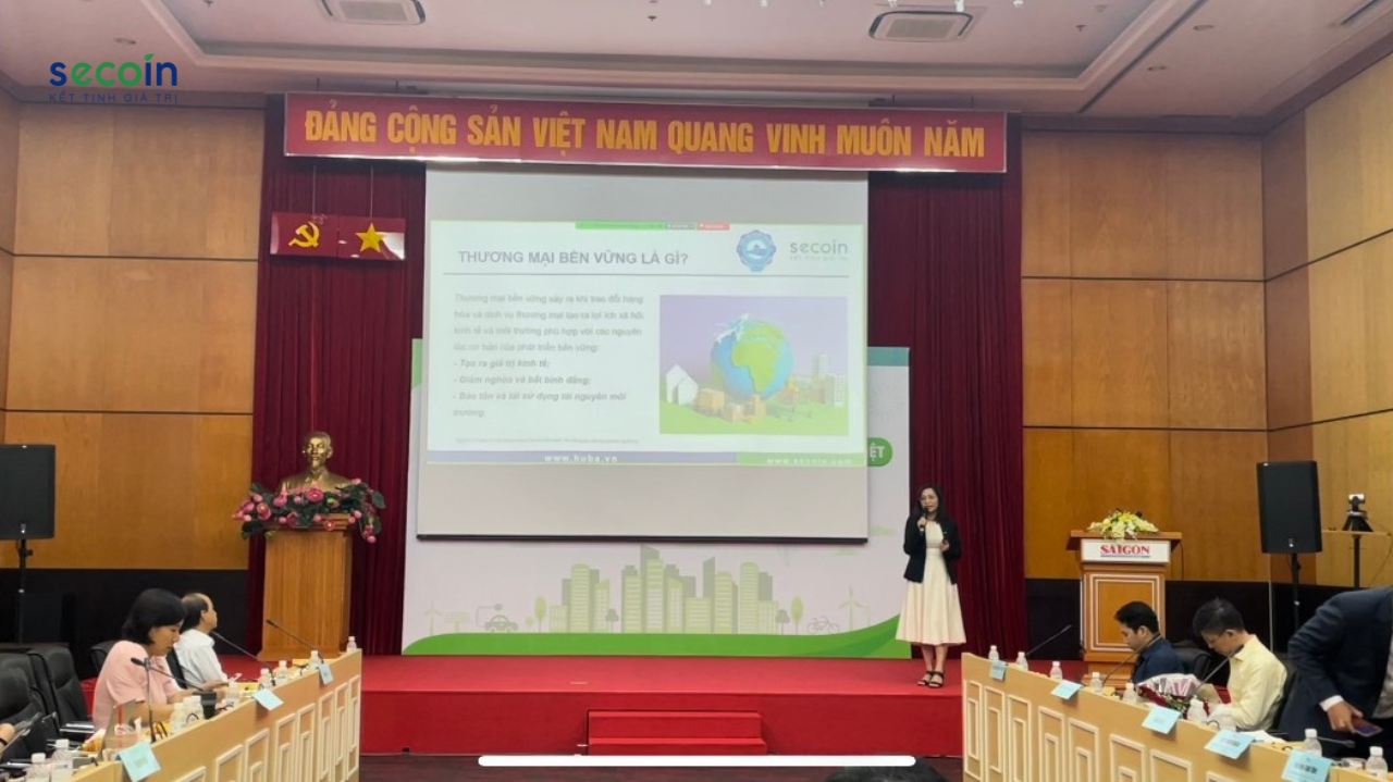 Ms. Vo Thi Lien Huong, General Director of Saigon Secoin Joint Stock Company, gave a presentation sharing on the topic "Brand development of Vietnamese enterprises in the context of green trade: Challenges and opportunities for businesses ". Ms. Huong said that Secoin is a pioneer enterprise in the field of art tile production in Vietnam, always focusing on sustainable brand development. Secoin art tile products are rich in traditional values, meeting the criteria of high quality, uniqueness and authenticity.