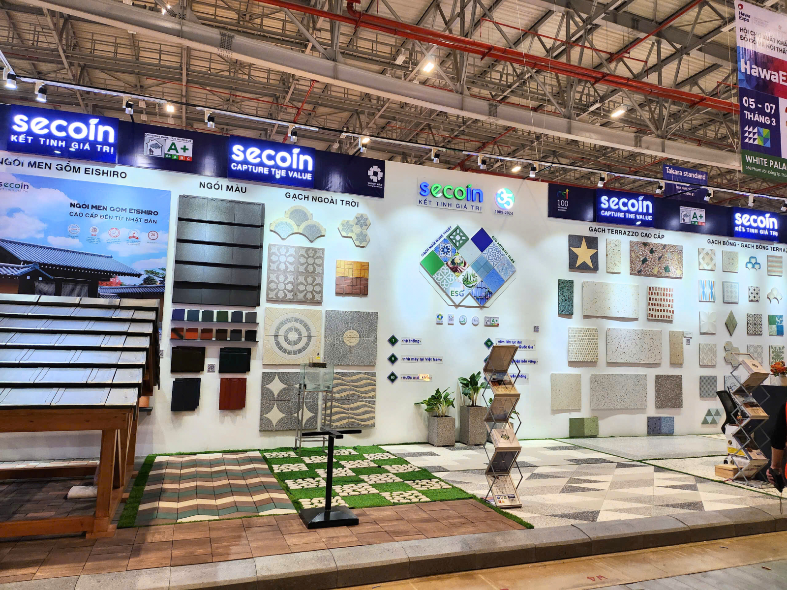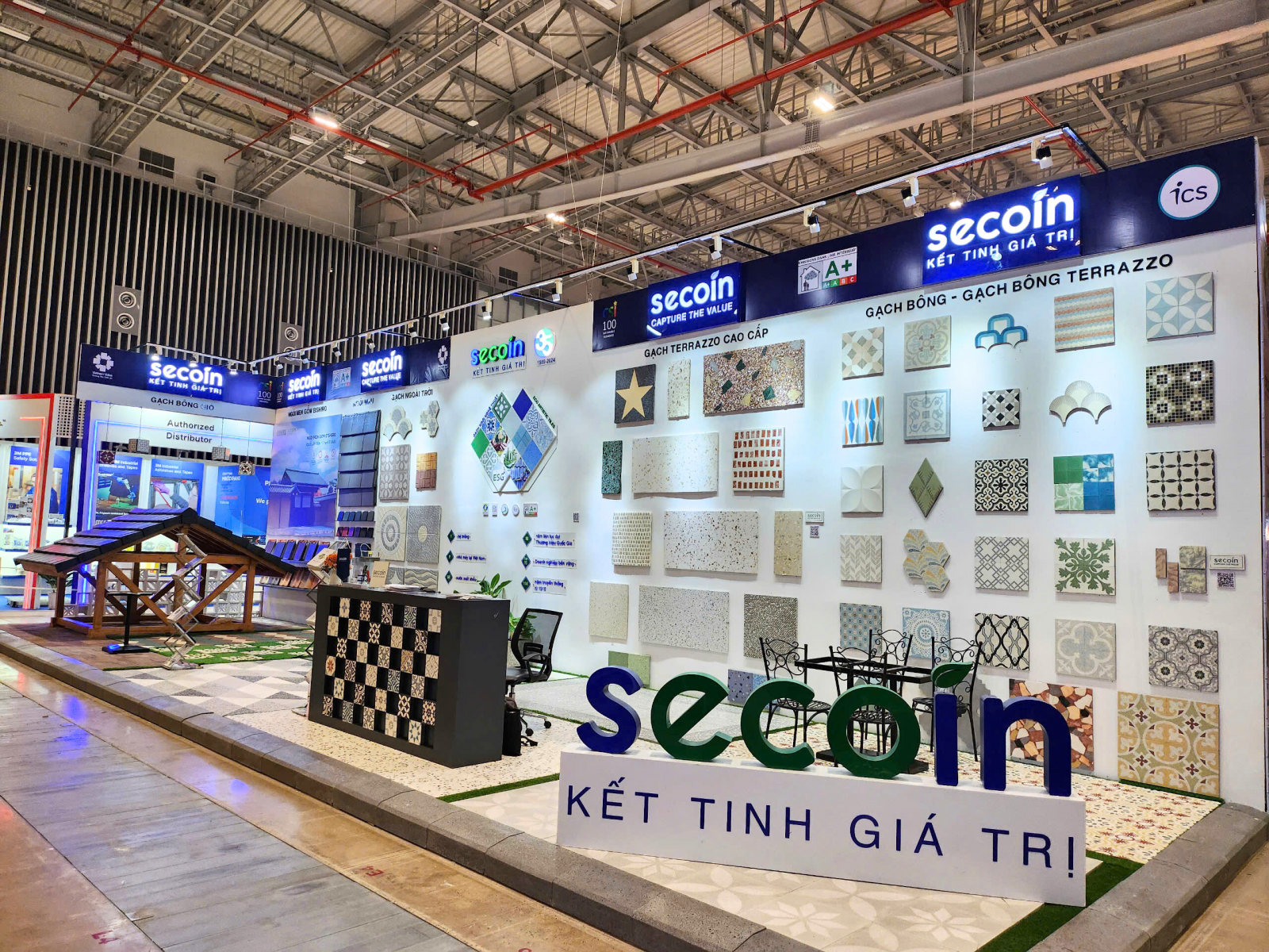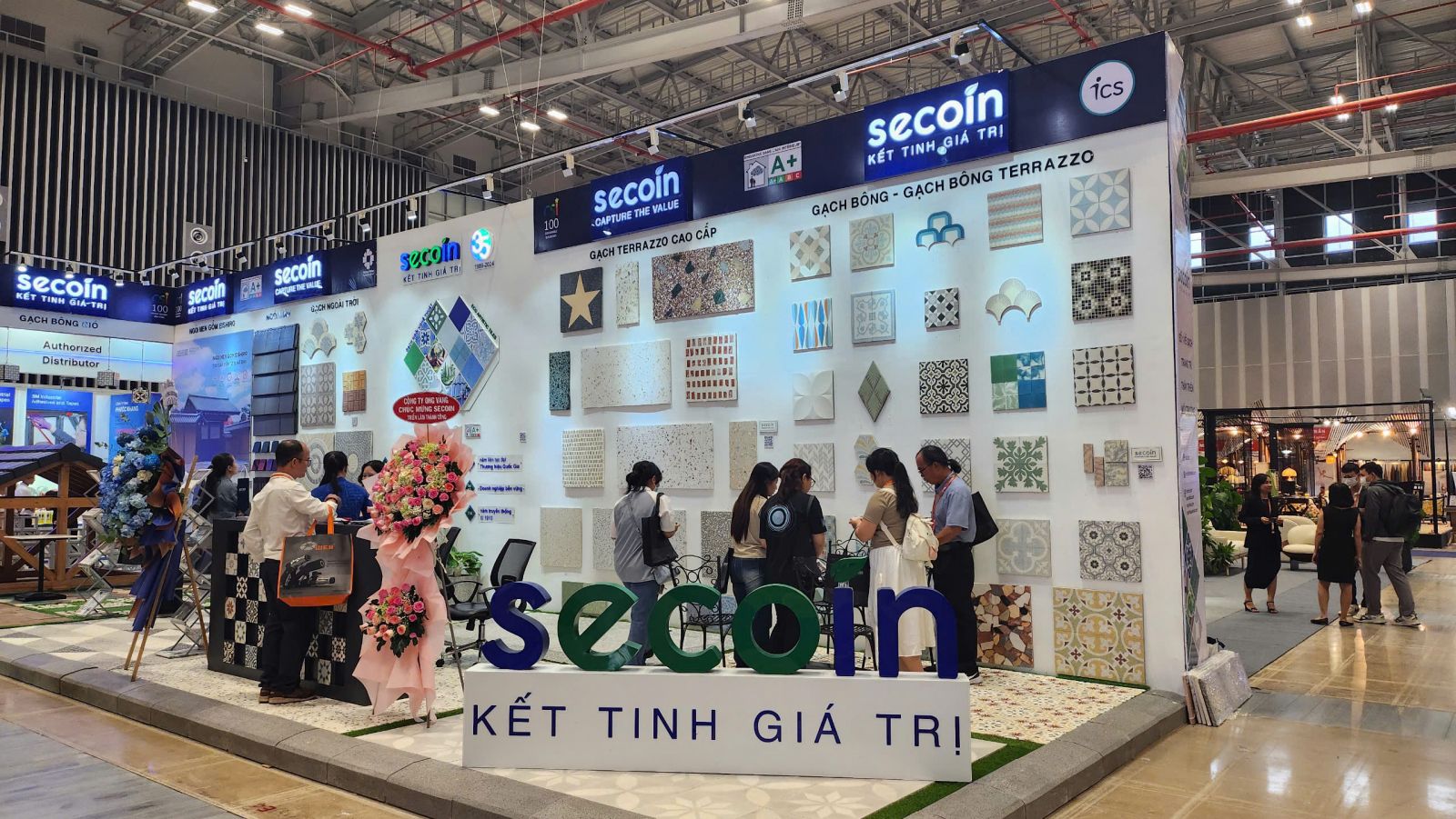 Secoin’s booth not only stands out with its modern design but also attracts visitors with its advanced products, reflecting the trend of sustainable development and smart technology application in the construction industry. Secoin’s new products include environmentally friendly and sustainable tiles, along with many innovative construction solutions to improve the efficiency and aesthetics of the project.