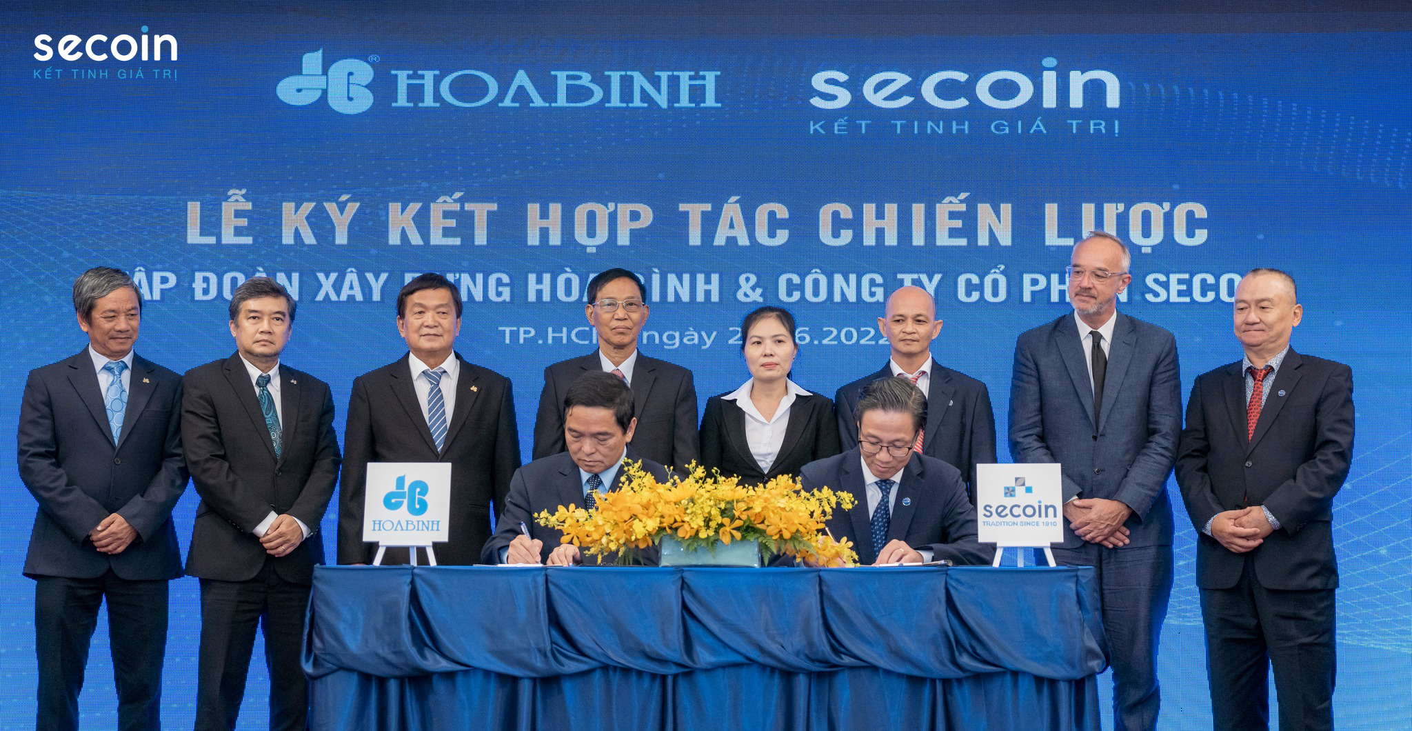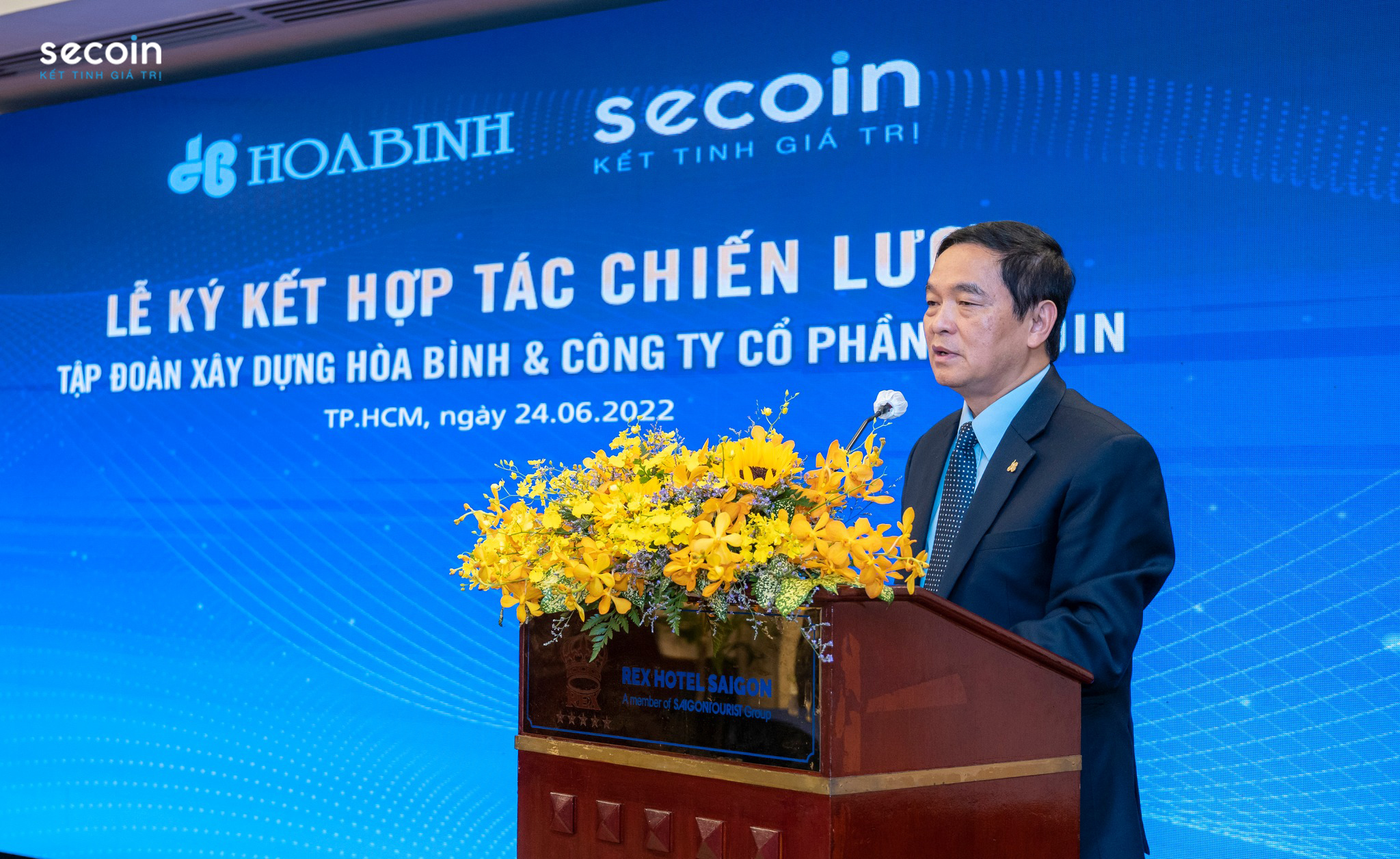 On the afternoon of June 24, 2022 at Rex Hotel – 141 Nguyen Hue, Ben Nghe Ward, District 1, Ho Chi Minh City, the signing ceremony of strategic cooperation between Hoa Binh Construction Group and Secoin Joint Stock Company took place.