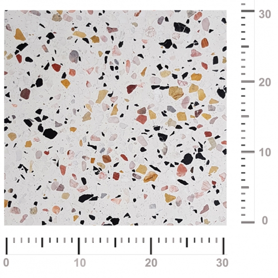 Gạch Terrazzo hạt đá của Secoin được làm từ chất liệu đá thiên nhiên với nhiều màu sắc, xi măng trắng, bột màu, bột đá và các phụ gia khác. Được sản xuất trên dây chuyền thiết bị hiện đại của Italy, đem lại những đặc tính nổi trội về độ chịu lực và độ chịu mài mòn cao, dễ lau chùi, sạch sẽ. Với đặc tính đó gạch đá mài không chỉ được ưa chuộng để lát sân vườn, mà còn được dùng để lát nền nhà ở, lát bếp nấu ăn, lát bậc thang, … Và tại Secoin với chất liệu terrazzo, các nhà thiết kế có thể tự chọn phối màu nền và phối màu hạt đá theo cách riêng của mình.
