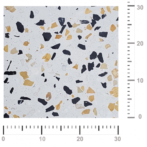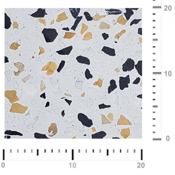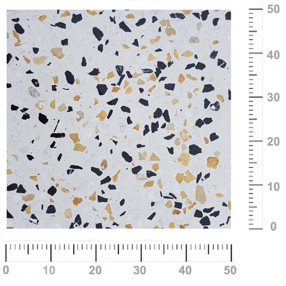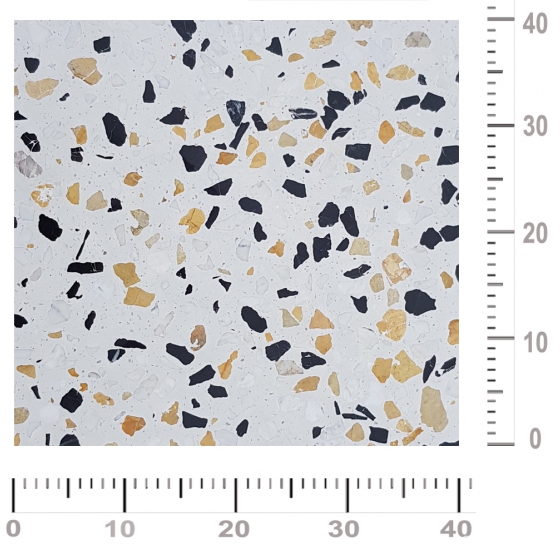 Gạch Terrazzo hạt đá của Secoin được làm từ chất liệu đá thiên nhiên với nhiều màu sắc, xi măng trắng, bột màu, bột đá và các phụ gia khác. Được sản xuất trên dây chuyền thiết bị hiện đại của Italy, đem lại những đặc tính nổi trội về độ chịu lực và độ chịu mài mòn cao, dễ lau chùi, sạch sẽ. Với đặc tính đó gạch đá mài không chỉ được ưa chuộng để lát sân vườn, mà còn được dùng để lát nền nhà ở, lát bếp nấu ăn, lát bậc thang, … Và tại Secoin với chất liệu terrazzo, các nhà thiết kế có thể tự chọn phối màu nền và phối màu hạt đá theo cách riêng của mình.
