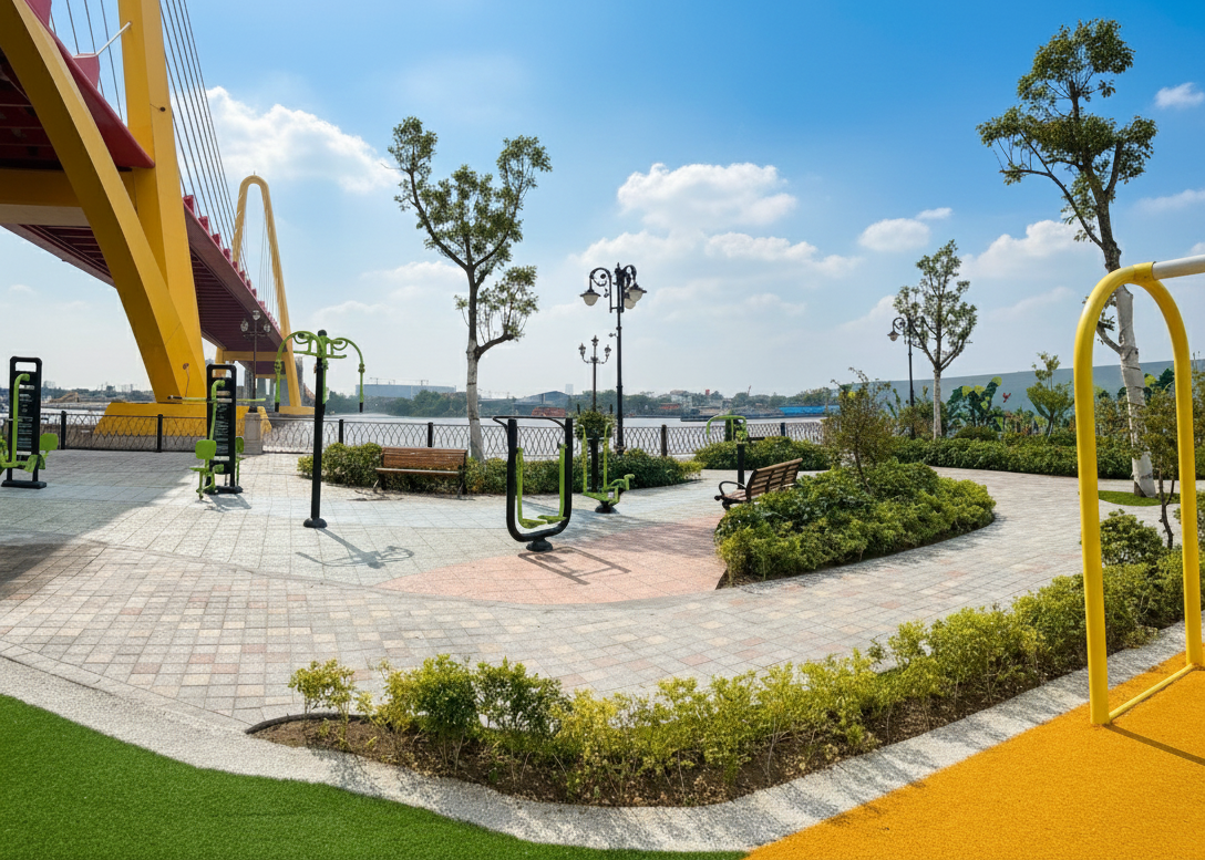 Tại công viên chân cầu Máy Chai – Vũ Yên (Hải Phòng), không gian cảnh quan ven sông hiện đại đang dần hình thành với những hạng mục được đầu tư bài bản, hướng tới phục vụ cộng đồng và nâng tầm diện mạo đô thị. Góp phần tạo nên diện mạo đó là gạch Granito Secoin – dòng vật liệu lát cảnh quan cao cấp, bền vững và thân thiện với môi trường.
