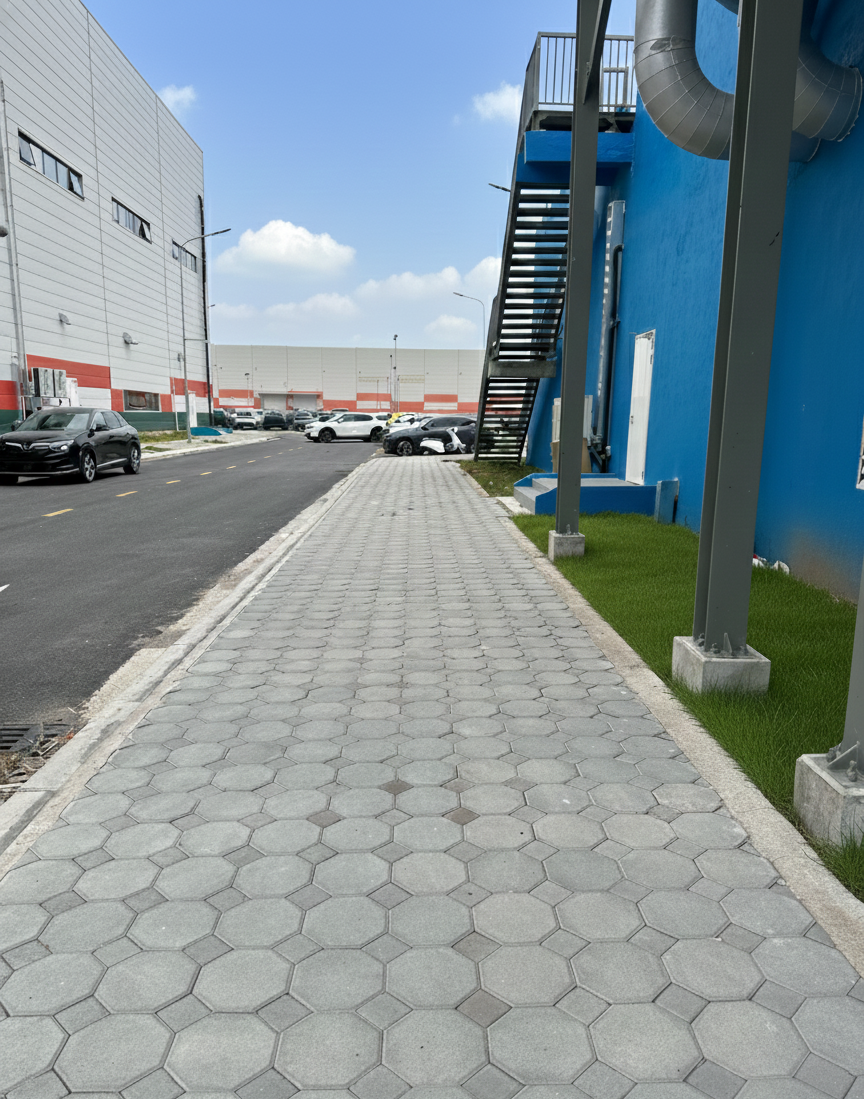 • Thân thiện môi trường: Là sản phẩm không nung, gạch tự chèn góp phần giảm khí thải và phù hợp với xu hướng xây dựng xanh trong các khu công nghiệp hiện đại.