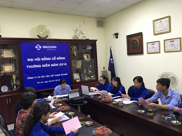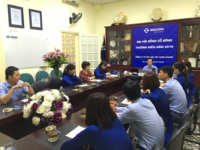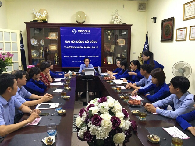 Ngày 02/07/2016, Công ty CP Vật liệu xây dựng Secoin đã tổ chức họp Đại hội đồng Cổ đông thường niên năm 2016 diễn ra tại văn phòng Công ty – 59 Hàng Chuối, phường Phạm Đình Hổ, quận Hai Bà Trưng, TP. Hà Nội, với sự tham dự của Hội đồng quản trị Công ty cùng toàn thể các vị cổ đông. Với số cổ đông tham dự đại hội đạt 99,57%.