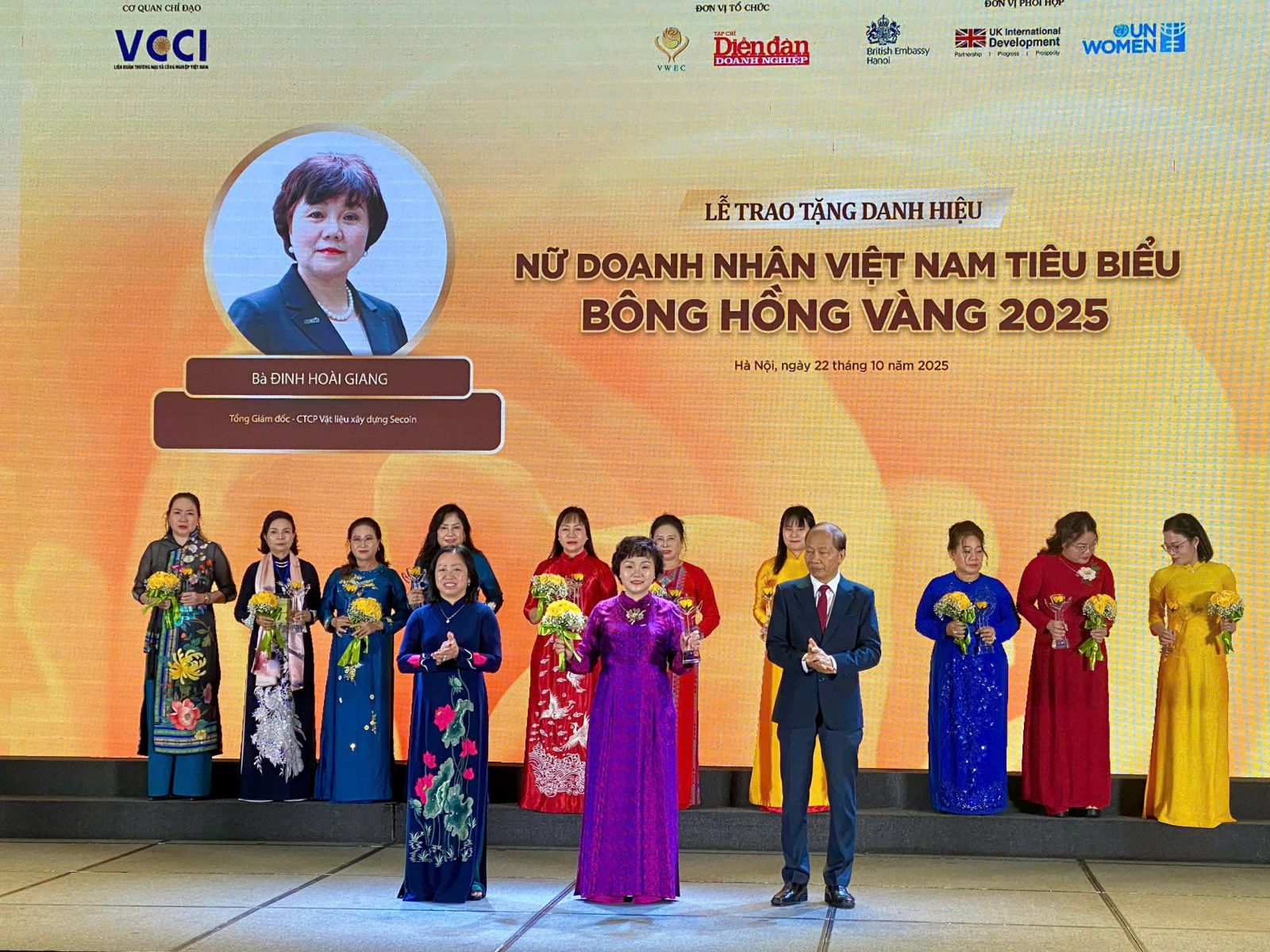 BÀ ĐINH HOÀI GIANG – PHÓ CHỦ TỊCH SECOIN VINH DỰ NHẬN DANH HIỆU “NỮ DOANH NHÂN VIỆT NAM TIÊU BIỂU – BÔNG HỒNG VÀNG NĂM 2025”