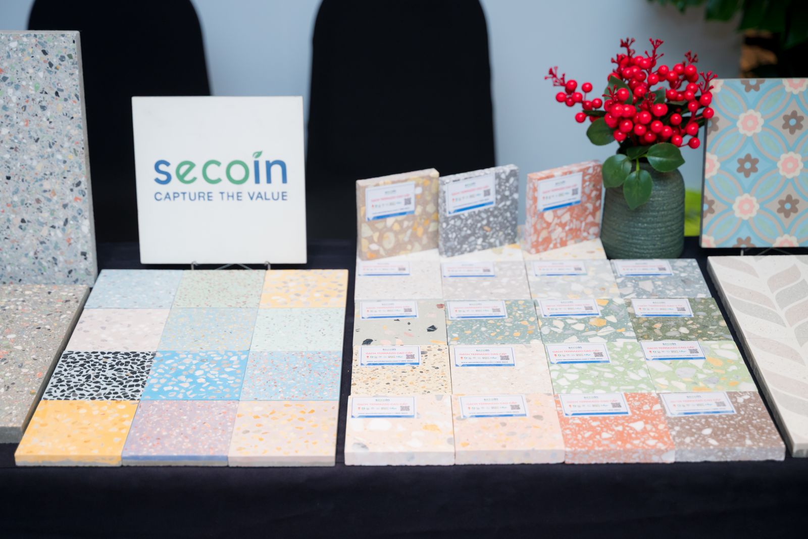 Tại VSCF 2025, gian trưng bày của Secoin giới thiệu các giải pháp vật liệu xanh, bền vững và giàu tính nghệ thuật, thể hiện rõ tinh thần “vật liệu xanh – kiến trúc đẹp – giá trị bền vững”. Nổi bật là gạch Terrazzo tái chế Secoin, được tạo nên từ việc tái sử dụng vụn terrazzo trong quá trình sản xuất, mang đến những bề mặt mới với sắc độ đặc trưng, vừa tối ưu tài nguyên vừa giảm chất thải rắn, phù hợp các công trình kiến trúc hiện đại và định hướng kinh tế tuần hoàn.